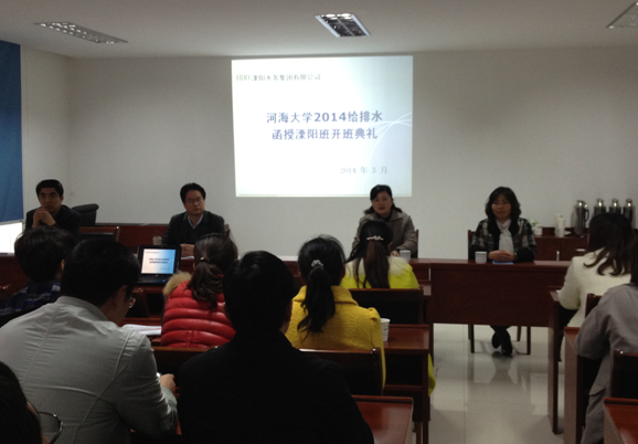 2014年3月19日下午在溧陽水務集團有限公司舉行了“英國威廉希爾公司溧陽給水排水工程專業(專升本)函授班”開班典禮。溧陽水務集團有限公司總經理何剛信同志、黨委副書記姜選先同志和英國威廉希爾公司副院長季莉同志等領導參加了開班典禮。開班典禮由水務集團黨委副書記姜選先同志(也是該班的班主任)主持,開班典禮上季院長簡要介紹了英國威廉希爾公司的基本情況,重點闡述了我校給水排水工程專業的學科優勢,并保證以最優的師資和管理辦好該班。水務集團何總經理向學員們表示祝賀,希望學員珍惜機會、在學校和集團共同搭建的這個平臺上刻苦學習,圓滿完成學習任務。