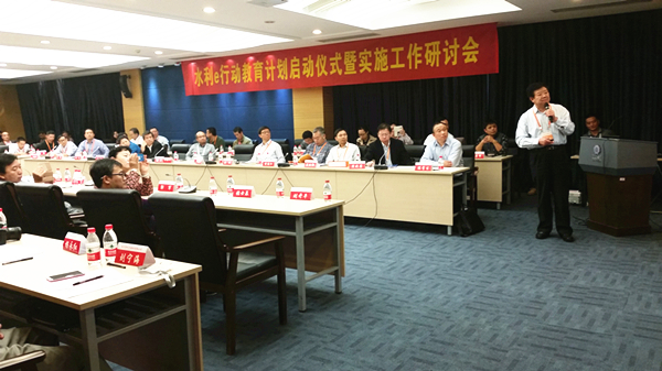 陳青生院長進行了“水利e行動教育計劃”專題匯報,匯報內容主要包括了建設背景、工作思路、工作計劃和愿景四個方面。