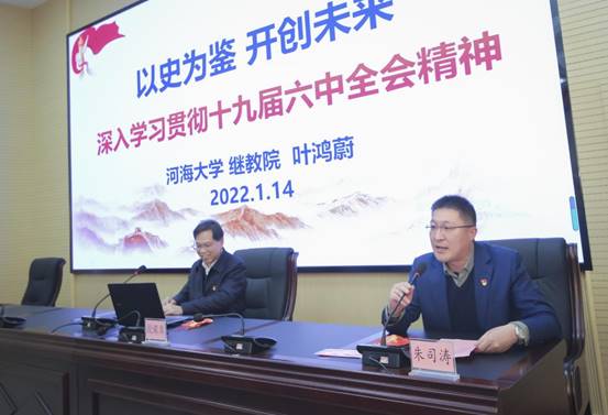 葉鴻蔚書記首先從深刻認識總結黨的百年奮斗重大成就和歷史經驗的重大意義,深刻認識黨的百年奮斗的初心使命和重大成就,深刻認識中國特色社會主義進入新時代的歷史性成就和歷史性變革,深刻認識黨的百年奮斗的歷史意義和歷史經驗,深刻認識以史為鑒、開創未來的重要要求,從黨的百年奮斗歷程中汲取智慧和力量六個方面,為黨員們做了《十九屆六中全會精神》的解讀。仲兆宏老師帶領黨員們一起重溫了《古田會議》的主要內容和時代價值。