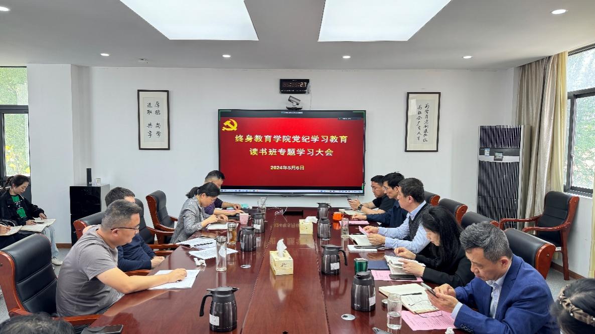 5月6日和5月8日下午,終身教育學院黨總支圍繞學習貫徹《中國共產黨紀律處分條例》,開展黨紀學習教育讀書班集中研學活動,活動由學院黨總支書記、院長朱亞主持,學院全體黨員參加活動。