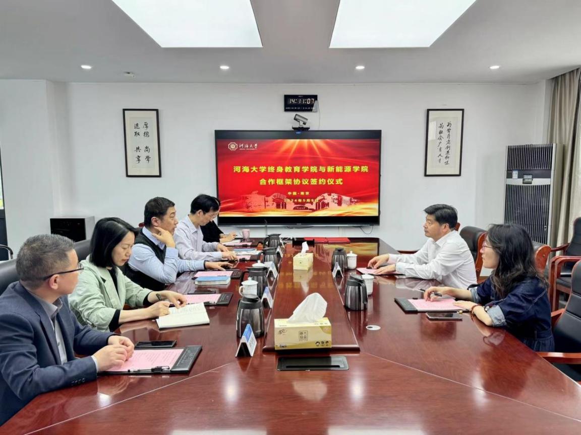 5月9日下午,終身教育學院與新能源學院舉行合作框架協議簽約儀式,終身教育學院黨總支書記、院長朱亞、新能源學院黨委書記楊春偉、終身教育學院副院長于偉、姚文賢出席簽約儀式。