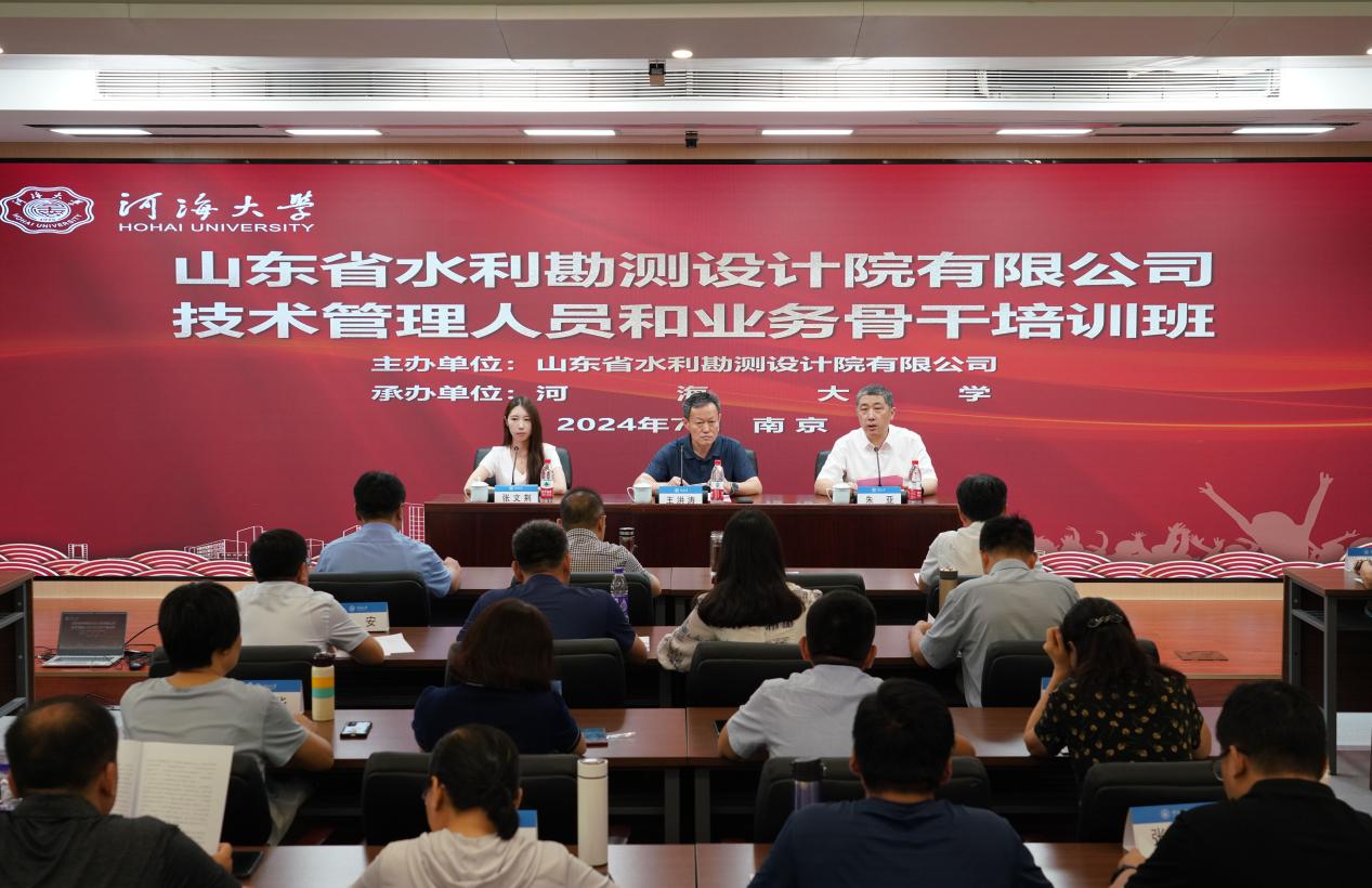 7月22日,山東省水利勘測設(shè)計(jì)院有限公司技術(shù)管理人員和業(yè)務(wù)骨干培訓(xùn)班在我校順利開班。山東省水利勘測設(shè)計(jì)院有限公司黨委副書記王洪濤,英國威廉希爾公司終身教育學(xué)院黨總支書記、院長朱亞出席開班儀式。英國威廉希爾公司終身教育學(xué)院張文荊主持開班儀式。