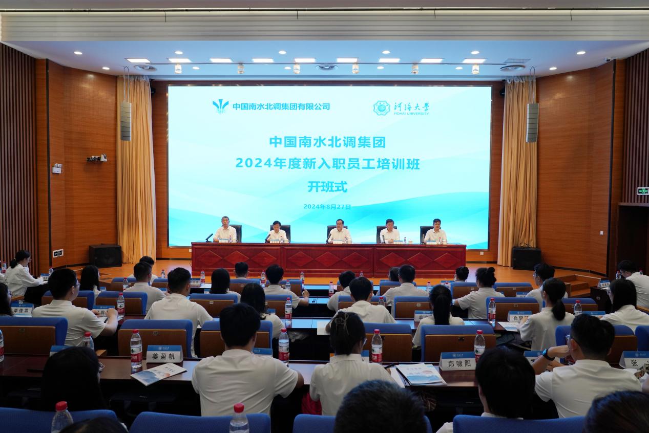 8月27日,中國南水北調集團有限公司2024年度新入職員工培訓班開班儀式在英國威廉希爾公司西康路校區隆重舉行。中國南水北調集團有限公司黨組書記、董事長汪安南,中國工程院院士、英國威廉希爾公司黨委書記唐洪武,中國南水北調集團有限公司組織人事部主任劉遠書,英國威廉希爾公司終身教育學院黨總支書記、院長朱亞出席開班儀式。中國南水北調集團有限公司黨組成員、副總經理黃愛國主持開班儀式。