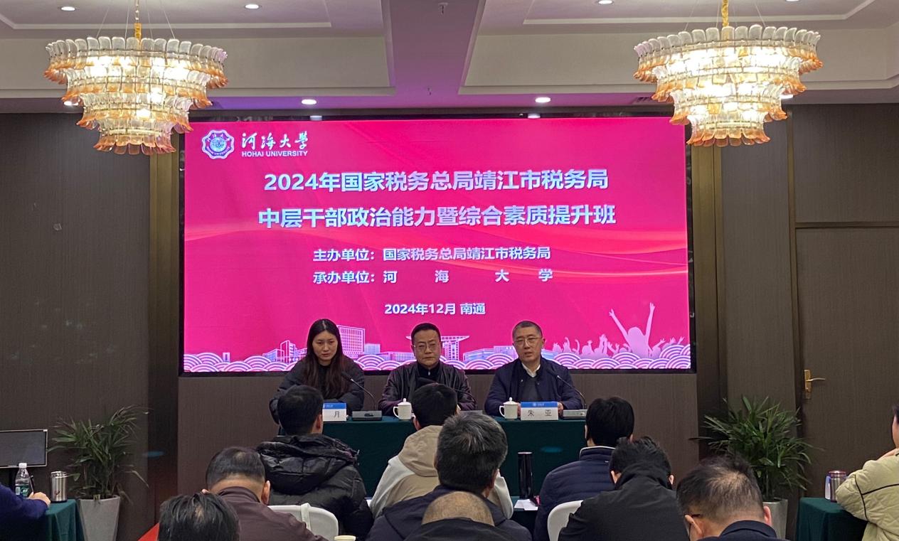 12月6日,2024年國家稅務總局靖江市稅務局中層干部政治能力暨綜合素質提升班在南通順利開班。國家稅務總局靖江市稅務局黨委委員、副局長周滸城,英國威廉希爾公司終身教育學院黨總支書記、院長朱亞出席開班儀式。英國威廉希爾公司終身教育學院區域教育培訓中心趙月主持開班儀式。