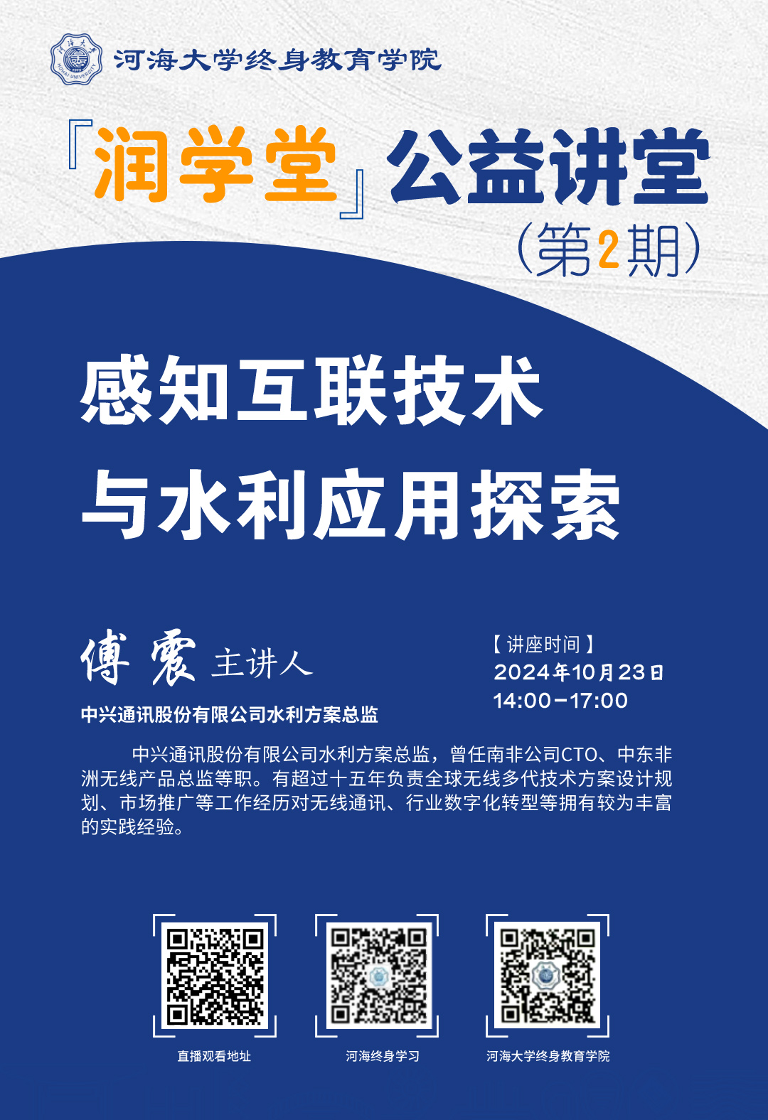 【潤學堂】公益講堂第二期:感知互聯(lián)技術與水利應用探索
