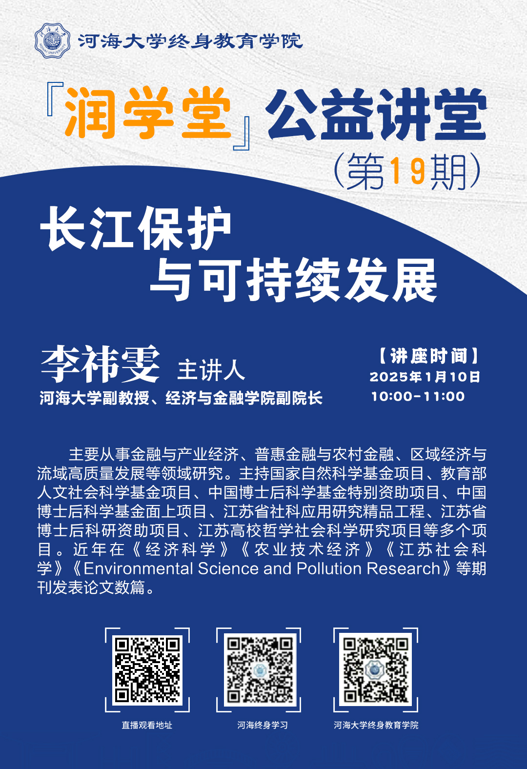 【潤學堂】公益講堂第十九期:長江保護與可持續(xù)發(fā)展