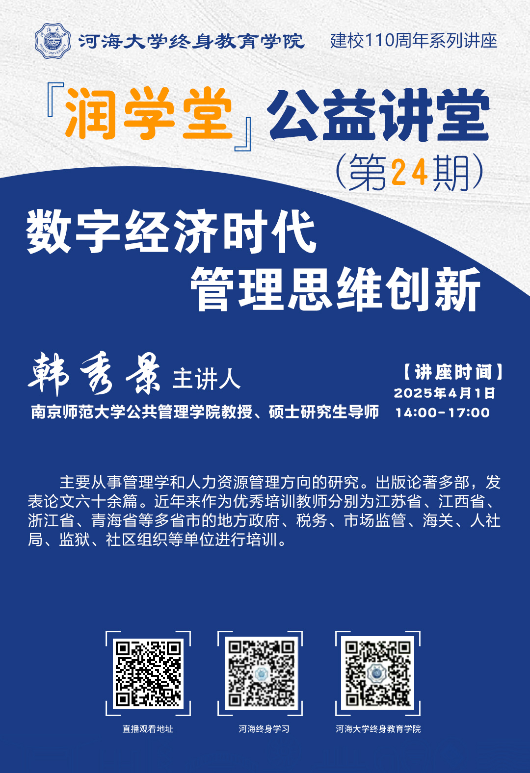 【潤學堂】公益講堂第二十四期:數字經濟時代管理思維創新