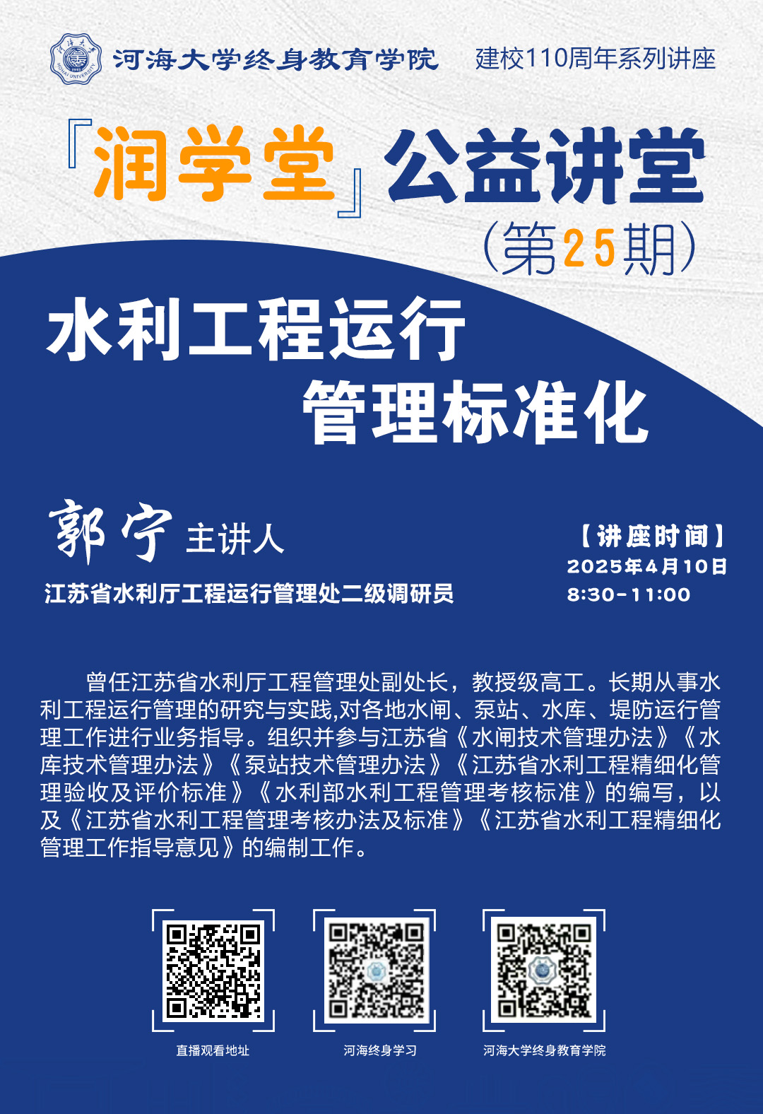【潤學堂】公益講堂第二十五期:水利工程運行管理標準化