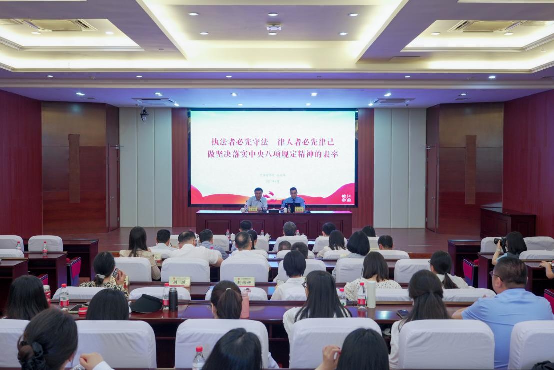 離開鐵軍營,活動轉(zhuǎn)場至江蘇省檢察官學院。省檢察院檢務(wù)督察處高尚偉同志為全體黨員帶來了一堂主題鮮明、內(nèi)涵深刻的“廉潔微黨課”。課程緊密結(jié)合檢察工作實際和高校教育特點,運用典型案例剖析,深入淺出地闡述了廉潔自律的重要性、風險防范的關(guān)鍵點以及加強作風建設(shè)的具體要求。這堂生動的廉潔教育課,如同一縷清風,滌蕩心靈,進一步強化了全體黨員的紀律意識、規(guī)矩意識和廉潔意識,為筑牢拒腐防變的思想道德防線提供了有力指導。